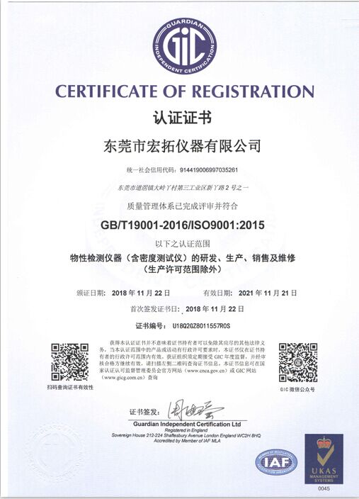 宏拓儀器通過ISO9001:2015質(zhì)量體系管理認證,通過國家計量測試中心全面質(zhì)量與性能檢測,獲得國家計量器具型式批準(zhǔn)CPA證書,參與起草制定: 【GB/T 1040.1-2025塑料 拉伸性能的測定】、【GB/T 1634.1-2025塑料 負荷變形溫度的測定】、【GB/T 44559.1-2024塑料 硬質(zhì)塑料沖孔性能的測定】 、【GBT 43139-2023鑄造鋁合金液減壓凝固試樣密度檢測】......等標(biāo)準(zhǔn)。